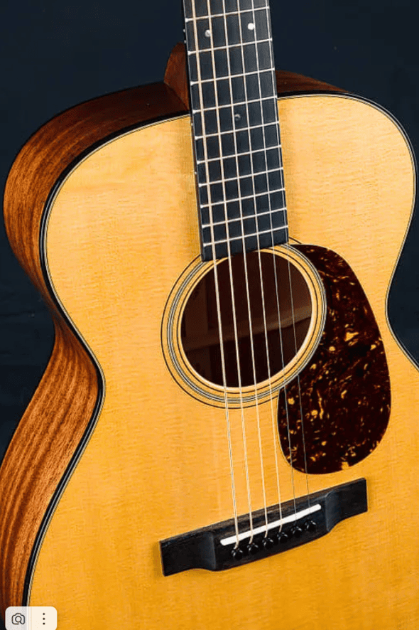 Гитара Martin Guitars 00-18 в натуральной блестящей отделке имеет корпус в форме Grand Concert. Верхняя дека выполнена из ели, а спинка и обечайка — из красного дерева. Гриф из древесины твёрдых пород обладает профилем Modified Low Oval и соединён с кузовом креплением «ласточкин хвост» на уровне четырнадцатого лада. Накладка из чёрного дерева оснащена мензурой 24,9 дюймов, верхним порожком шириной 44,45 мм и 20 ладами со вставками 18 Old Style из абалона.