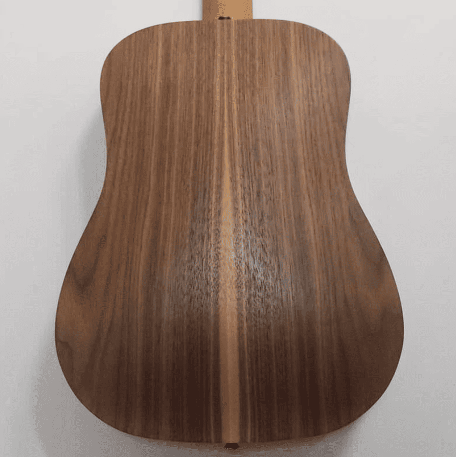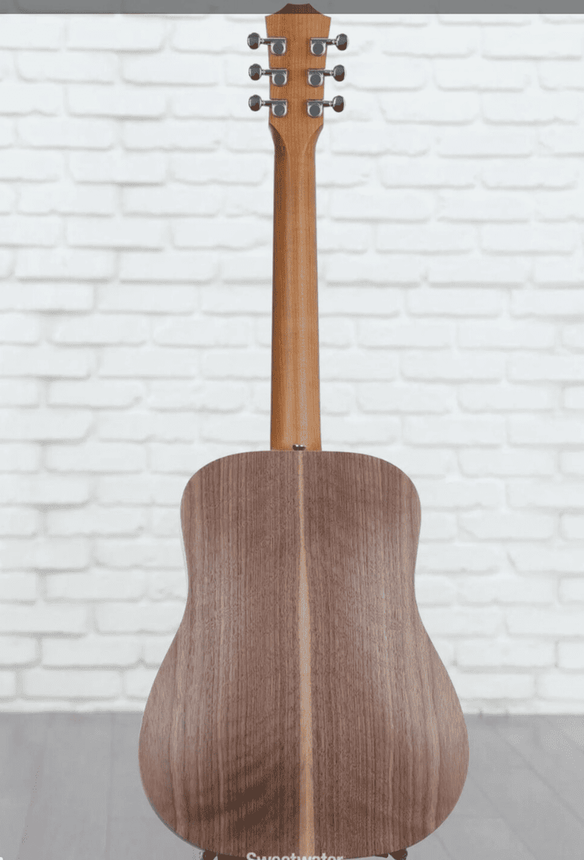 Гитара Taylor BT1 Baby Taylor Walnut в натуральной отделке с матовым покрытием обладает компактным корпусом размера 3/4, по форме напоминающим уменьшенный Dreadnought. Верхняя дека выполнена из массива ели, а спинка и обечайки — из ламината ореха. Такой подбор материалов формирует универсальное звучание с мощным основным тоном, который остаётся сфокусированным даже при агрессивной атаке. Кленовый гриф с тонким профилем позволяет легче удерживать струны для игры аккордов. Накладка из чёрного дерева оснащена верхним порожком Nubone, мензурой 22,75 дюйма и 19 ладами со вставками в виде точек из итальянского акрила.