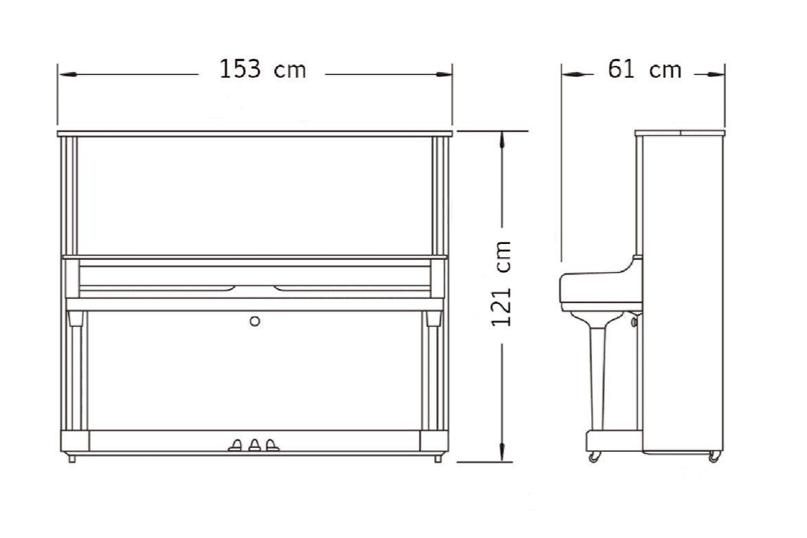 Используется специальный японский молоточек (Royal George). Благодаря перкуссии молоточка фортепиано имеет яркий тембр, великолепный тон и и изумительной глубины резонанс. Инструмент создан с неизменным стремлением обеспечить наилучшее качество звука в компактном корпусе высотой 121 см.