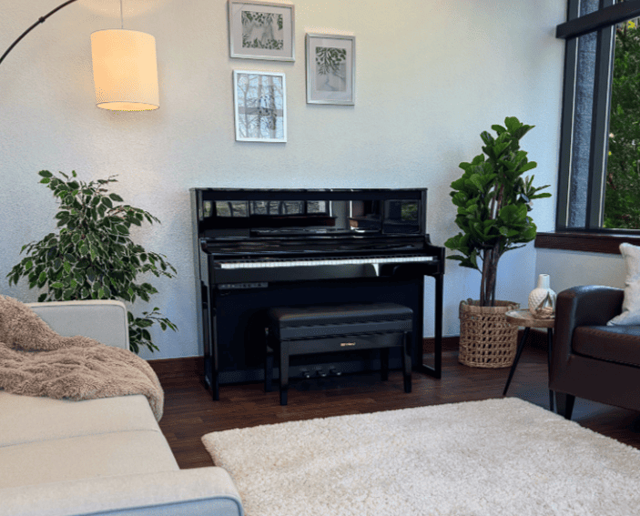 Roland LX-6 отличается элегантным дизайном и оборудован сенсорной панелью с экраном, которые можно затемнять для поддержания безупречного внешнего вида. Этот инструмент гармонично объединяет современный стиль и передовые технологии, что делает его не только привлекательным дополнением к интерьеру, но и надежным инструментом для музыкантов. Использование высококачественных материалов и тщательно проработанная конструкция гарантируют великолепное звучание и долговечность устройства.