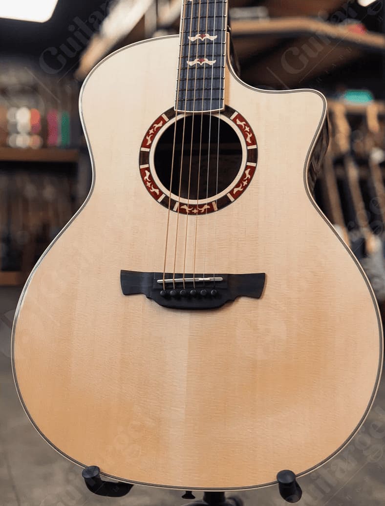 Верхняя дека гитары CRAFTER STG G-20ce выполнена из массива ели Энгельмана, которая в производстве музыкальных инструментов ценится выше, чем обычная ель. Гитару с верхней декой из массива ели Энгельмана с глянцевым покрытием непременно оценят музыканты, любящие звонкое и громкое звучание. Гитары с толстой верхней декой из такой ели обладают большей чувствительностью, отзывчивостью, их звучание прекрасно сбалансировано по всем частотам. У ели Энгельмана древесина более темная, желтовато-коричневого цвета. Дерево имеет меньшую жесткость и плотность по сравнению с обычной или ситхинской елью, за счет чего инструмент более восприимчив ко всем нюансам звукоизвлечения. Нижняя дека и обечайки инструмента изготовлены из индийского палисандра, что дополняет звучание инструмента своей разборчивостью и теплотой.