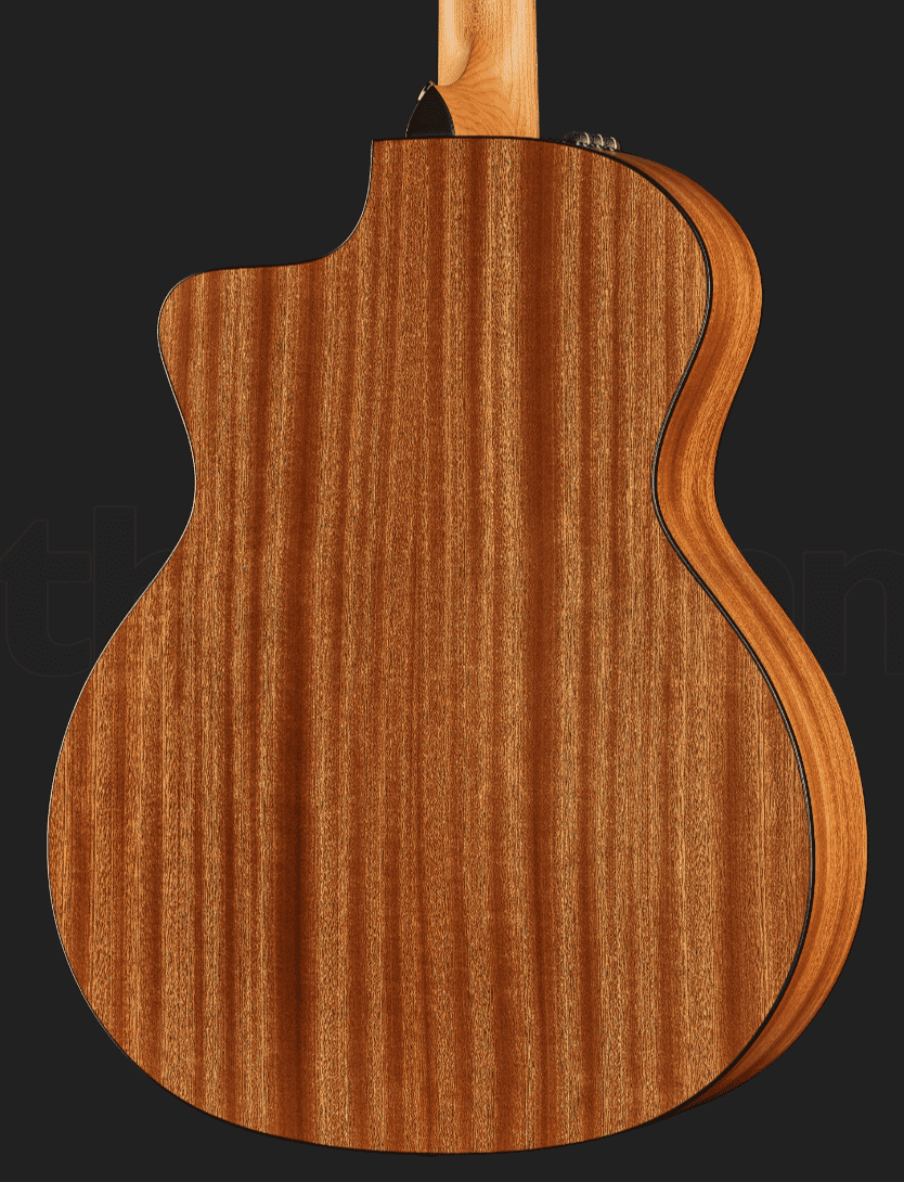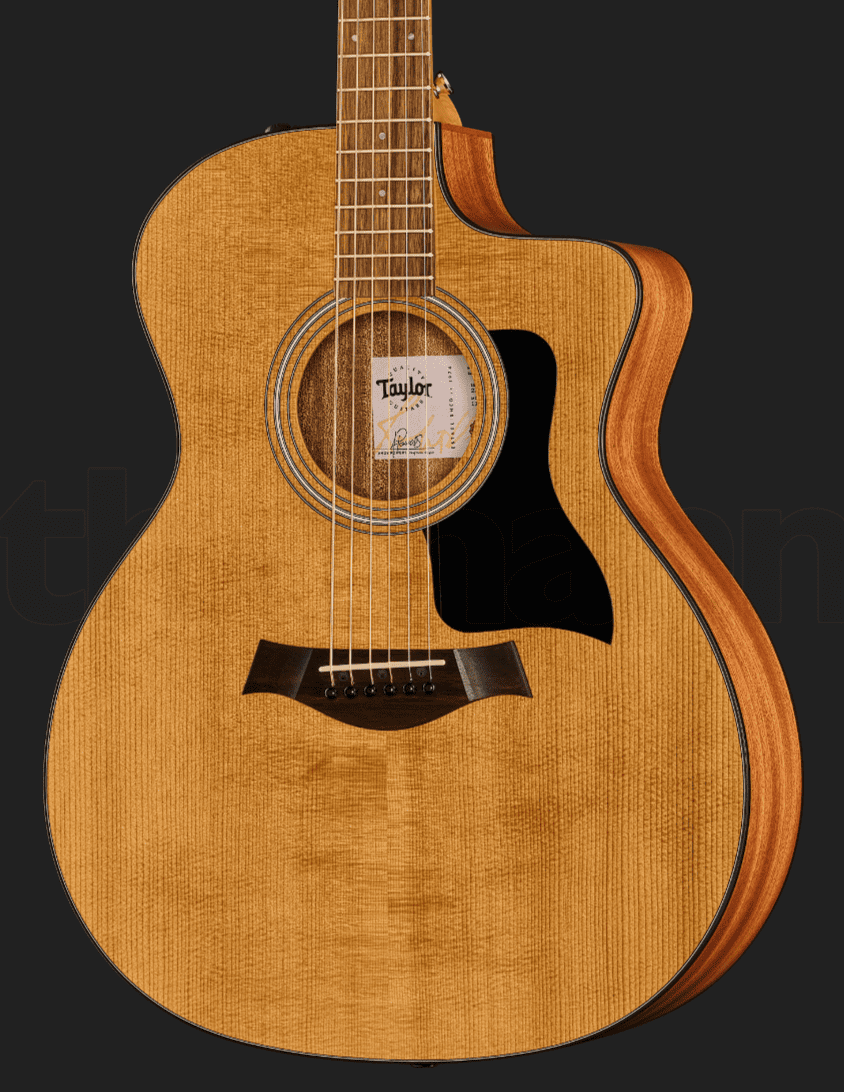Модель Taylor 114ce-S Sapele имеет многослойную спинку и обечайку из сапеле, а также верхнюю деку из ситкинской ели. Такое сочетание древесины обеспечивает достаточную громкость, а также энергичный и чёткий отклик. Венецианский вырез на корпусе Grand Auditorium в натуральной отделке гарантирует лёгкий доступ к высоким ладам. Узкий порожек делает игру более расслабленной для гитаристов, только начавших разучивать первые ноты и аккорды. Гриф из клёна обладает накладкой из чёрного дерева и 20 ладами. Инструмент оснащён встроенной электроникой Expression System 2 для расширения диапазона музыкальных возможностей. Гитара поставляется в комплекте с фирменным чехлом.