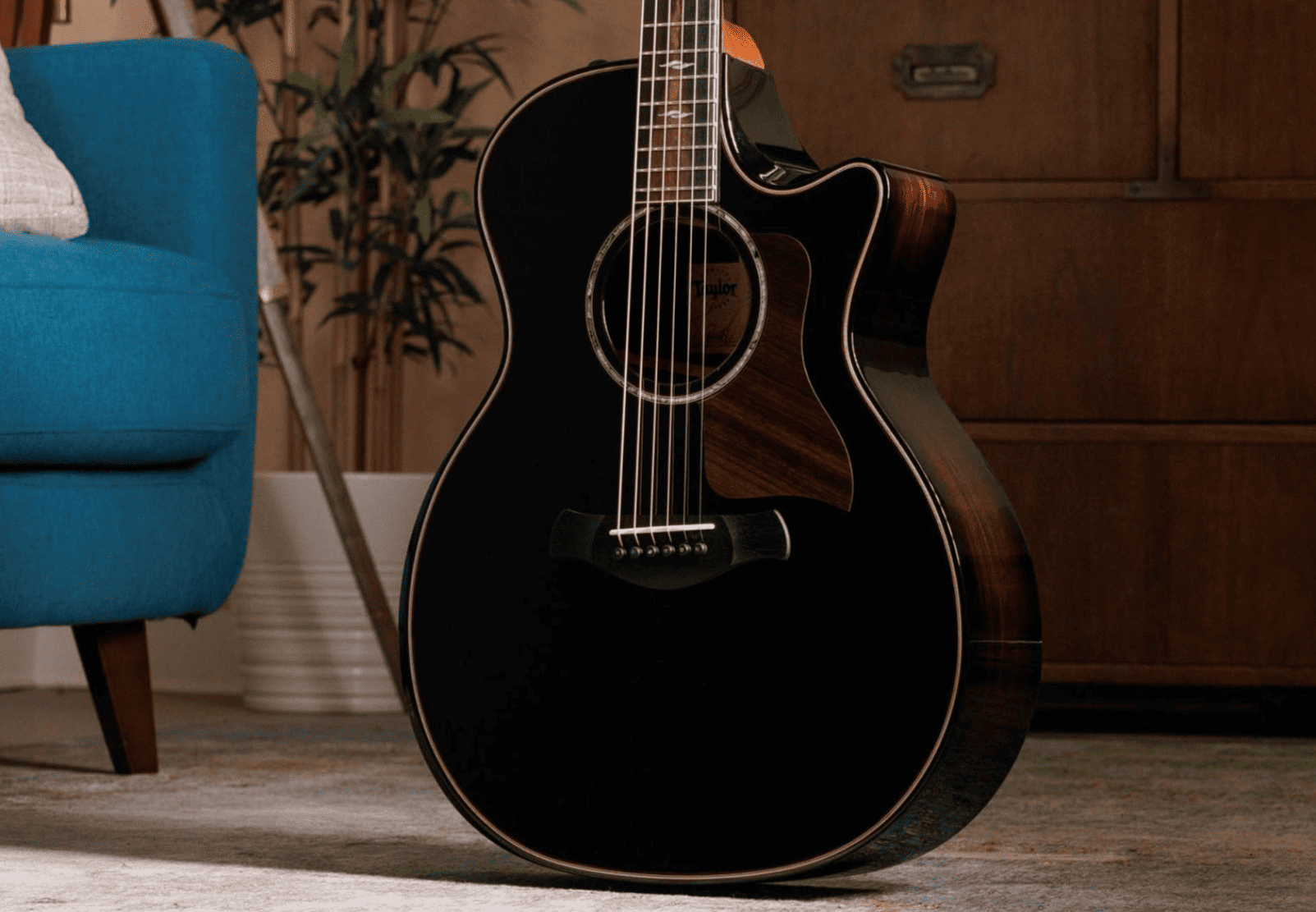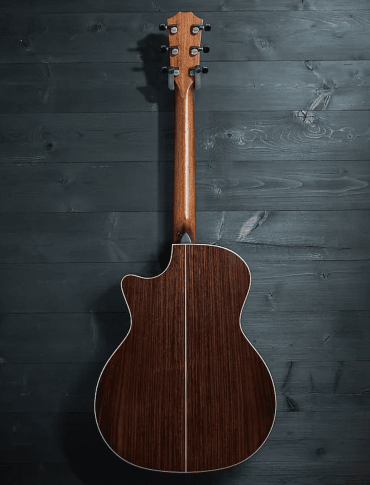 Гитара Taylor 814ce Builders Edition в чёрной отделке имеет узкий корпус Grand Auditorium с вырезом для лёгкого доступа ко всем ладам. Верхняя дека выполнена из массива ели, а спинка и обечайка — из палисандра. Такое сочетание тоновой древесины обеспечивает теплые низкие частоты, ясные высокие тона и мощность. Уникальная распорка V-класса улучшает звук, позволяя создавать более громкие, продолжительные и гармонирующие друг с другом ноты. Гладкий гриф из красного дерева оснащён накладкой из чёрного дерева, 20 ладами со специальными вставками Element и универсальной мензурой 25,5 дюймов.