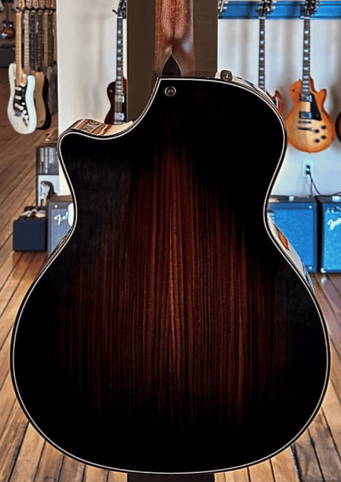 Гитара Taylor Builder's Edition 814ce имеет узкий корпус Grand Auditorium с вырезом для лёгкого доступа ко всем ладам. Верхняя дека выполнена из ели, а спинка и обечайка — из индийского палисандра. Такое сочетание тоновой древесины обеспечивает теплые низкие частоты, ясные высокие тона и мощность. Уникальная распорка V-класса улучшает звук, позволяя создавать более громкие, продолжительные и гармонирующие друг с другом ноты. Гладкий гриф из красного дерева оснащён накладкой из чёрного дерева, 20 ладами со специальными вставками Element и универсальной мензурой 25,5 дюймов.