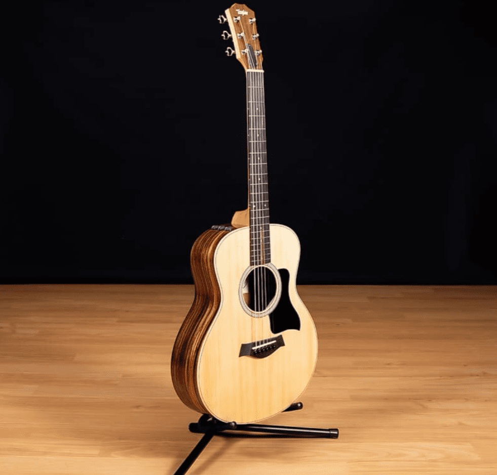 Гитара Taylor GS Mini-e Rosewood Plus Rosewood обладает уменьшенным корпусом Grand Symphony в натуральной отделке. Верхняя дека изготовлена из массива ели, а спинка и обечайка — из палисандра. Такое сочетание материалов позволяет добиться зрелого и насыщенного звука. Гриф из красного дерева с тонким профилем обеспечивает расслабленные ощущения от игры. Накладка из чёрного дерева оснащена укороченной мензурой 23,5 дюйма и 20 ладами с инкрустацией в виде точек из итальянского акрила.