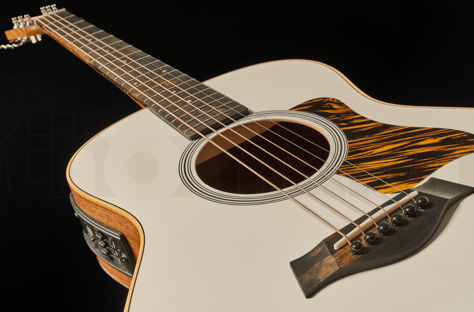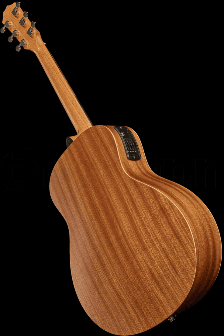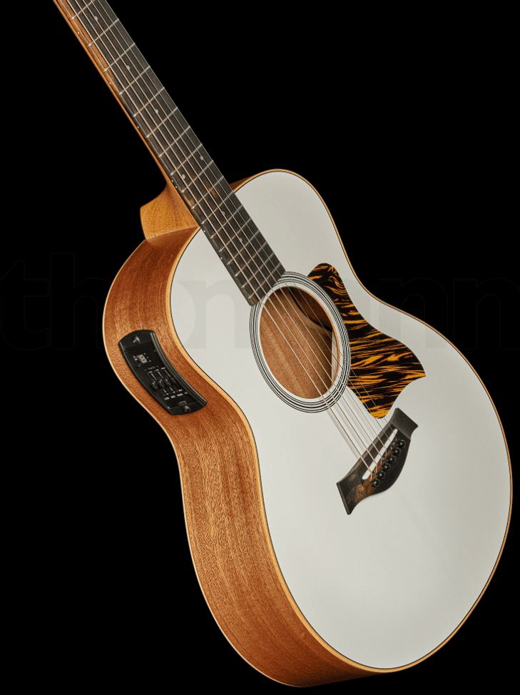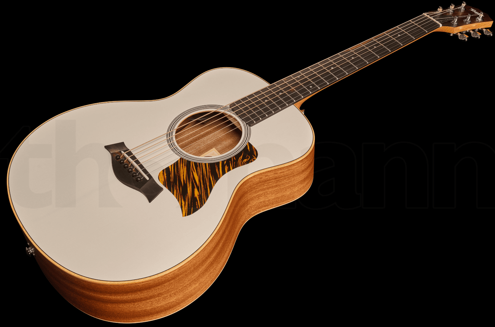 Гитара Taylor GS Mini-e Special Edition в отделке TWH обладает уменьшенным корпусом Grand Symphony, что делает модель удобной для путешествий и начинающих музыкантов. Верхняя дека выполнена из ели для придания звучанию мощности и яркого тона, а спинка и обечайка — из сапеле для прочности и долговечности. Гриф из красного дерева оснащён накладкой из чёрного дерева, верхним порожком NuBone шириной 42,8 мм и 20 ладами с инкрустацией в виде точек.
