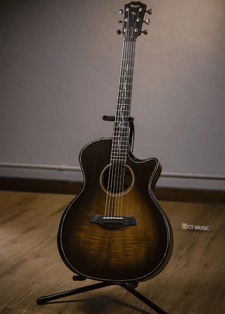 Гитара Taylor K24ce обладает глянцевым корпусом Grand Auditorium из коа с вырезом. Гриф из красного дерева имеет накладку из чёрного дерева и 20 ладов и гарантирует великолепные игровые характеристики. Конструкция гитары в сочетании с инновационной V-распоркой обеспечивает отличительный звуковой характер с тональными преимуществами. Гитара Taylor K24ce разработана как для звукозаписывающих сессий, так и для выступлений на сцене. Звукосниматель Expression System 2 с тремя отдельными бриджевыми датчиками качественно усиливает естественное акустическое звучание. Гитара также оборудована позолоченными колками Gotoh и поставляется в комплекте с кейсом Taylor Deluxe Hardshell.