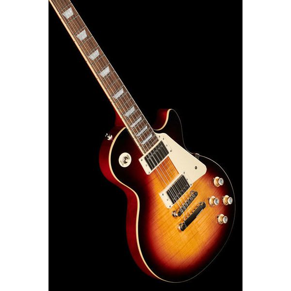 Гитара Epiphone Les Paul Standard '60s в отделке Bourbon Burst имеет корпус Les Paul из красного дерева с топом из огненного клёна сорта АА. Вклеенный гриф из красного дерева обладает тонким профилем SlimTaper «С» образца 1960-х годов, который удобно лежит в руке. Накладка из лавра оснащена 12-дюймовым радиусом для облегчения изгибов струн, мензурой 24,75 дюйма и 22 средними ладами с перламутровой инкрустацией в виде трапеций.