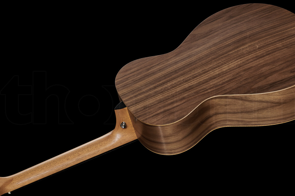 Taylor Academy Series 12e-N — гитара, объединившая в себе лучшее от электроакустических и классических гитар. Модель обладает компактным корпусом Grand Concert в натуральной отделке, который дополнен «подлокотником» для комфортной игры. Верхняя дека изготовлена из ели, а спинка и обечайка — из сапеле. Такое сочетание материалов позволяет добиться чёткости и резонанса. Гриф из красного дерева оснащён закруглённой накладкой из чёрного дерева, универсальной мензурой 25,5 дюймов и 17 ладами со вставками в виде точек.